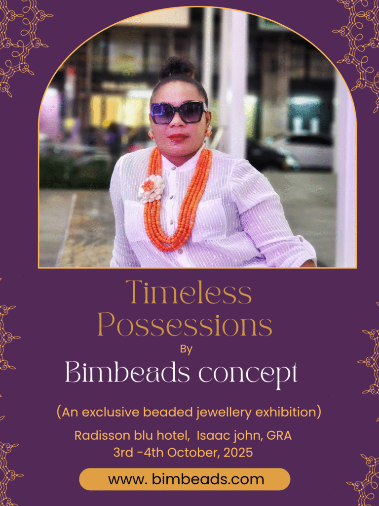 Lagos, Nigeria – September 19, 2025 – Bimbeads Concept, Nigeria’s foremost handcrafted jewelry brand, has announced its exclusive exhibition, Timeless Possession, set to take place at the Radisson Blu Hotel (Ikeja-Lagos) on October 3–4, 2025. The two-day showcase will feature a rare collection of luxury beaded jewelry pieces, blending traditional artistry with contemporary design for collectors and style connoisseurs.