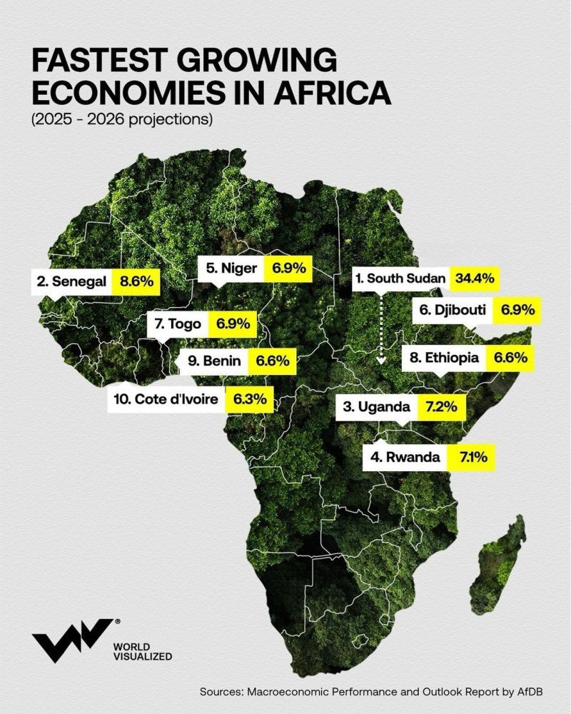 5๏ธโฃ Niger ๐ณ๐ช +6.9% Oil expansion, mining, a strong agricultural base, and infrastructure development