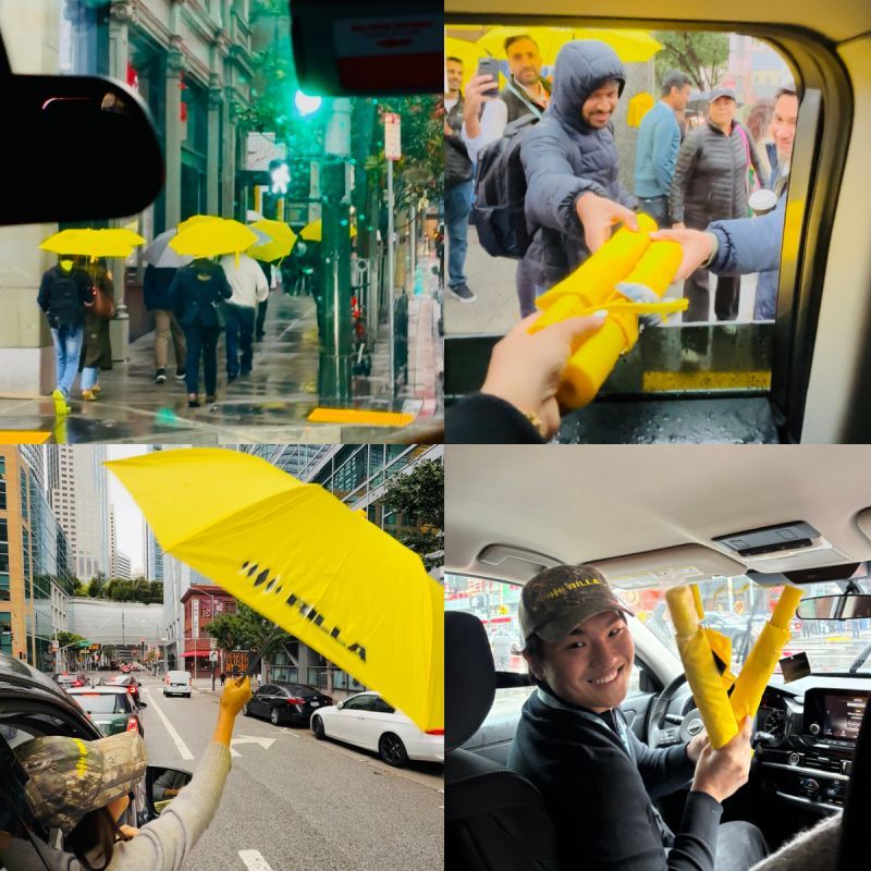 When rain threatened to drench thousands of attendees, Rilla turned the forecast into an opportunity — handing out bright yellow umbrellas that not only helped people but also turned San Francisco’s streets into a moving billboard of sunshine.